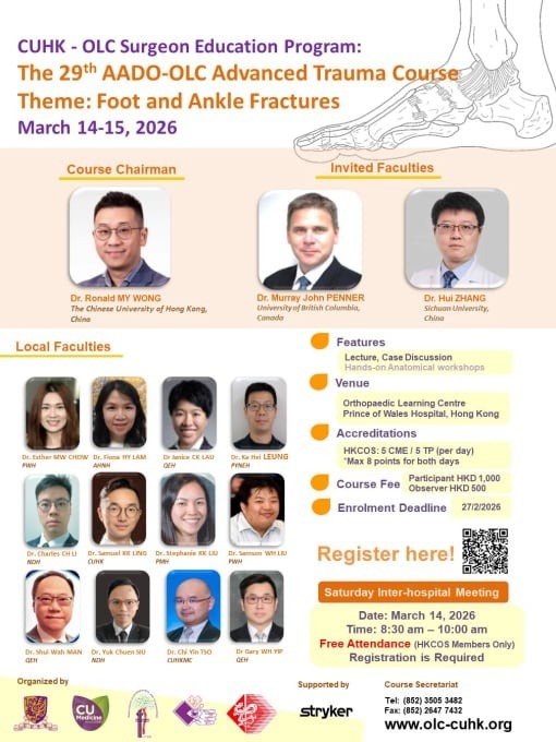 2026年3月14-15日CUHK-OLC骨科醫生培訓計劃 第29屆AADO-OLC進階創傷課程 主題:足踝創傷相冊