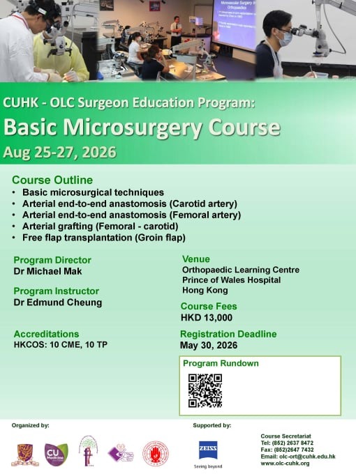 2026年8月25-27日 CUHK-OLC骨科醫生培訓計劃 顯微鏡手術基礎課程